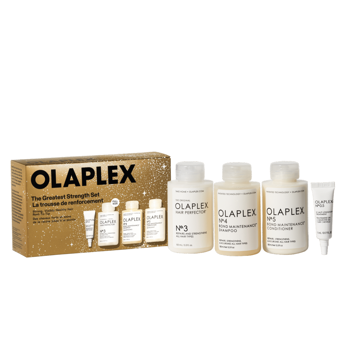 Šis OLAPLEX Ziemassvētku komplekts ir noslēpums redzami veselīgiem un stipriem matiem – patentētā OLAPLEX Bond Technology™ tehnoloģija atjauno matus molekulārā līmenī un atgriež to spēku, bet kokosriekstu eļļas formula attīra un mitrina. Galvas ādas kopšana atjauno lipīdu līdzsvaru un piešķir matiem zīdainu gludumu un vitalitāti.